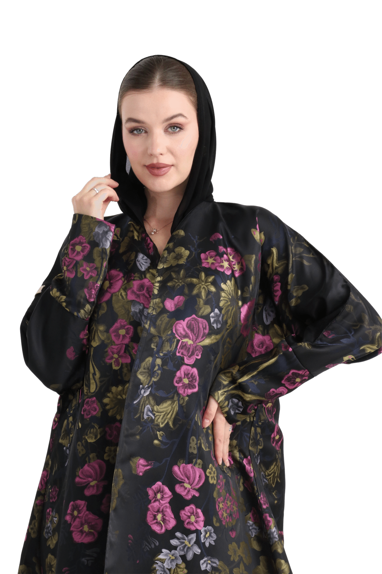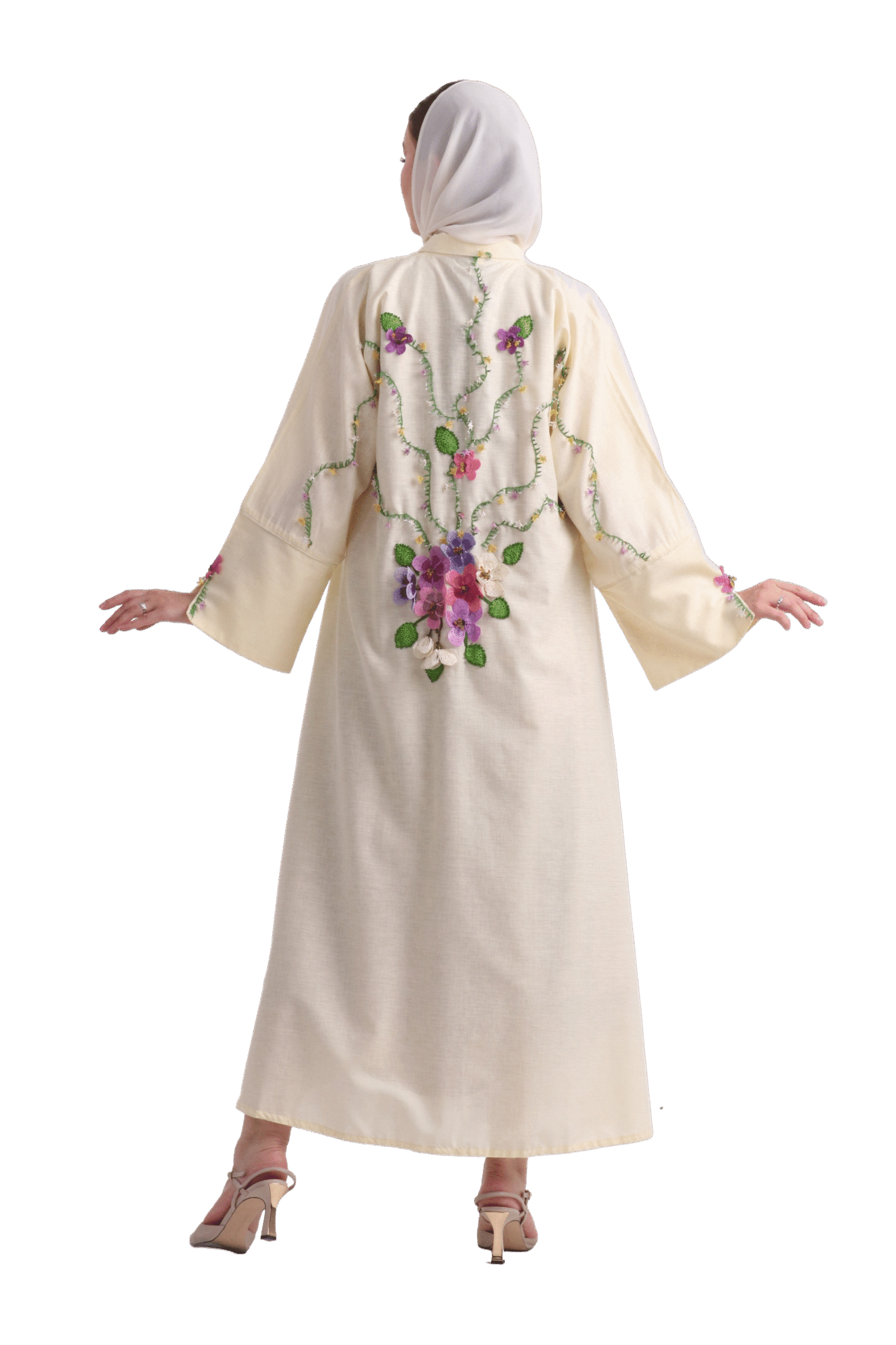 Sheer elegance, rich detail—your statement abaya for the season.